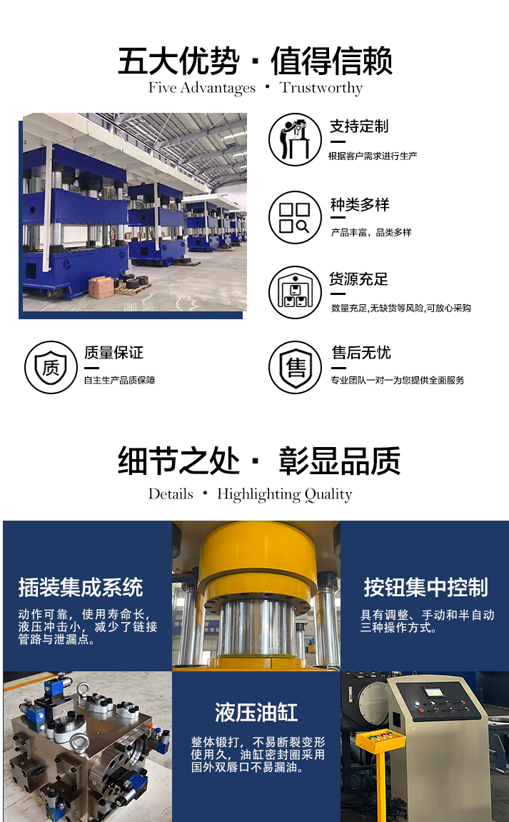 活塞:活塞是位于機身上方的移動部件,也稱為上模。它與液壓缸相連,通過液壓系統提供的壓力推動活塞進行上下運動。上模通常通過連接桿與機身連接,用于對工件進行壓制、沖擊等加工。