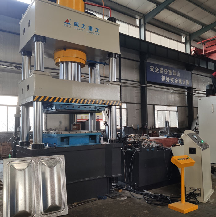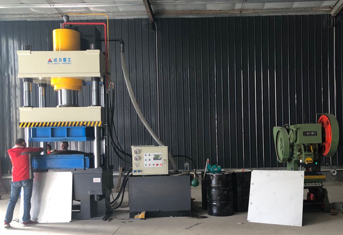 1、如果使用3mm厚304不銹鋼、4mm厚的鍍鋅板、4mm厚的鐵板使用400噸的四柱液壓機就可以,配合下頂缸。